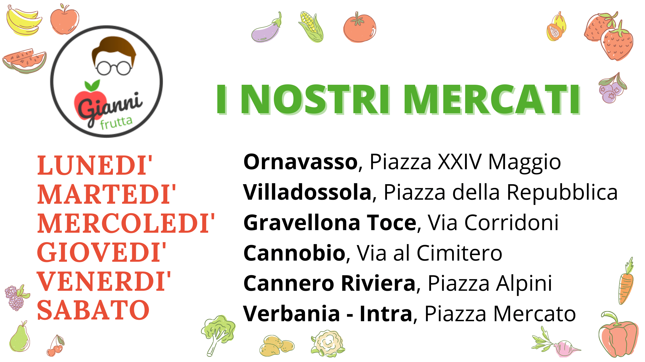 Come i fruttivendoli di una volta, dal lunedì al sabato ci spostiamo nei mercati della provincia di Verbania per offrire i freschissimi sapori della frutta e verdura di una volta.